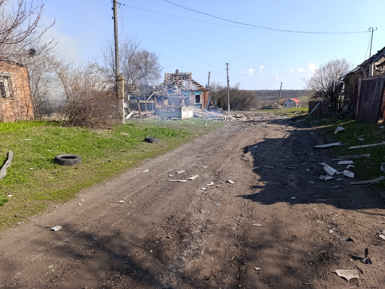 За його даними, сьогодні, 13 квітня, о 8:30 армія рф завдала авіаудару 2 КАБ по околиці села Рясне Золочівської громади та 1 КАБ по населеному пункту.