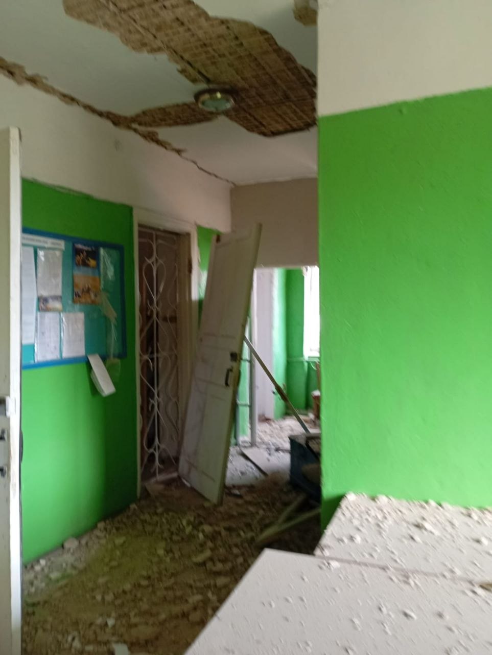 Внаслідок ударів пошкоджено дах, стіну та вікна будівлі.
