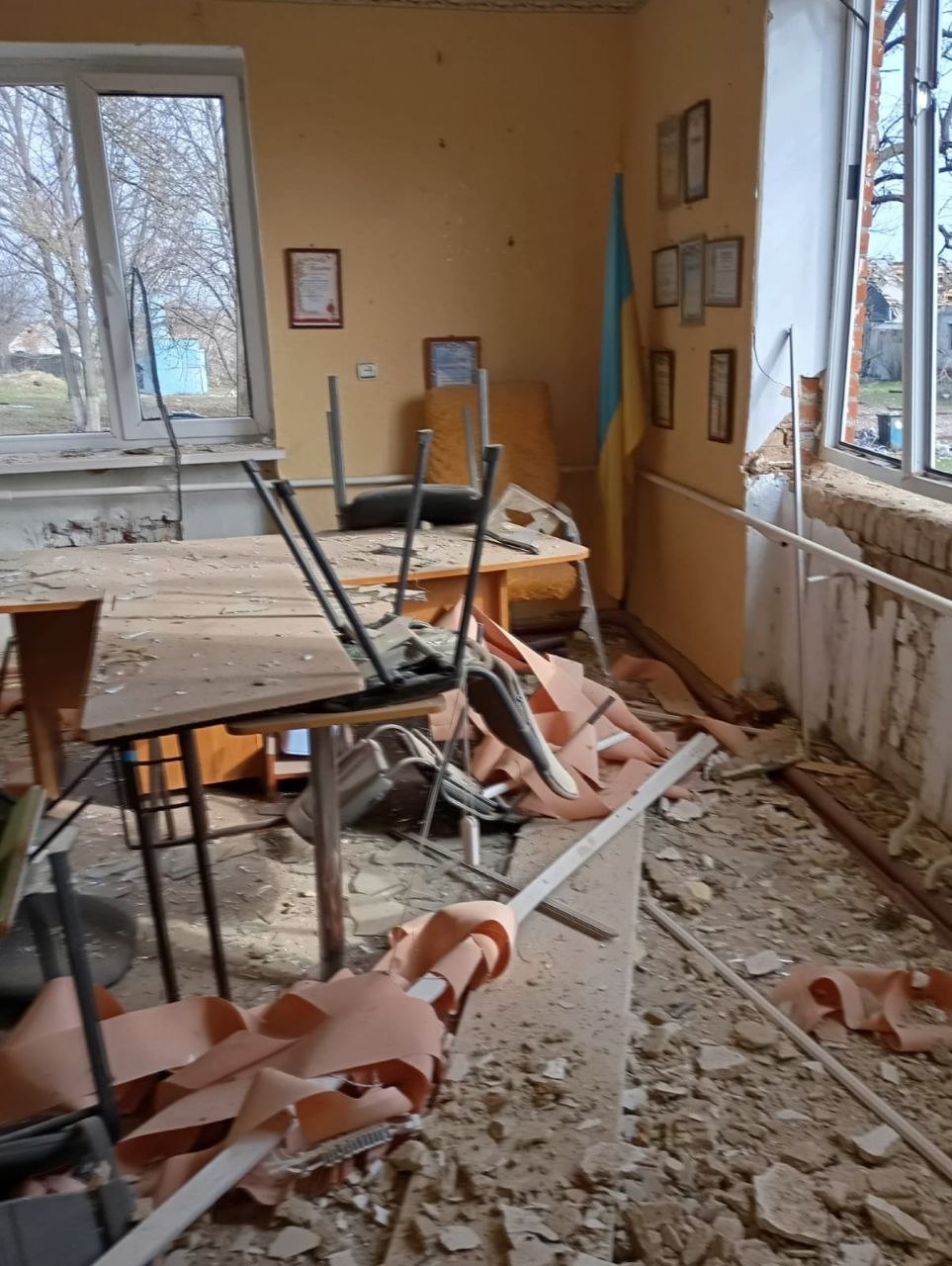 Крім того, у приміщенні "Пункту незламності" знищено оргтехніку, меблі та інформаційні стенди.